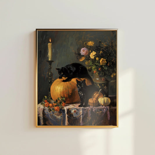 Autumnal Pumpkin Black Cats - Printable Digital Art