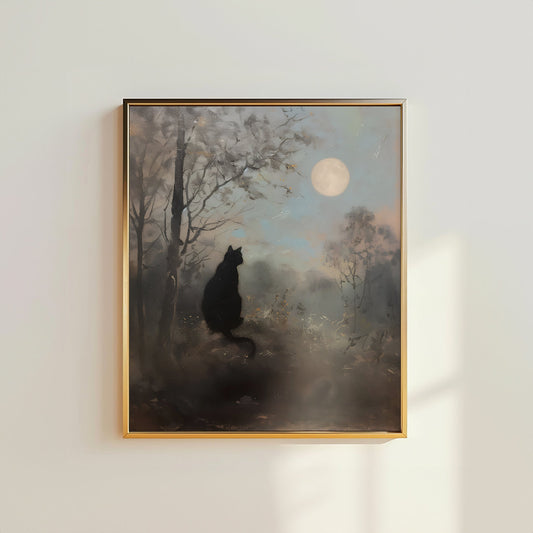 Black Cat Moon Night Sky - Printable Digital Art